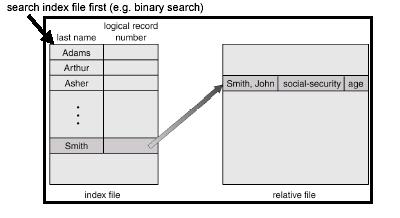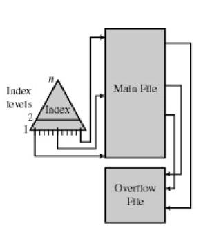Example: a file contains 1 million records. On average 500,000 accesses are required to find a record in a sequential file. If an index contains 1000 entries, it will take on average 500 accesses to find the key, followed by 500 accesses in the main file. Now on average it is 1000 accesses.