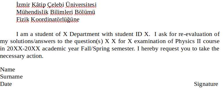 2. STEP4: OBJECTIONS. If you want your answers to be re-evaluated, you should make a petition (see picture below) to the instructor. Download doc (en or tr) file and send it to me via e-mail.