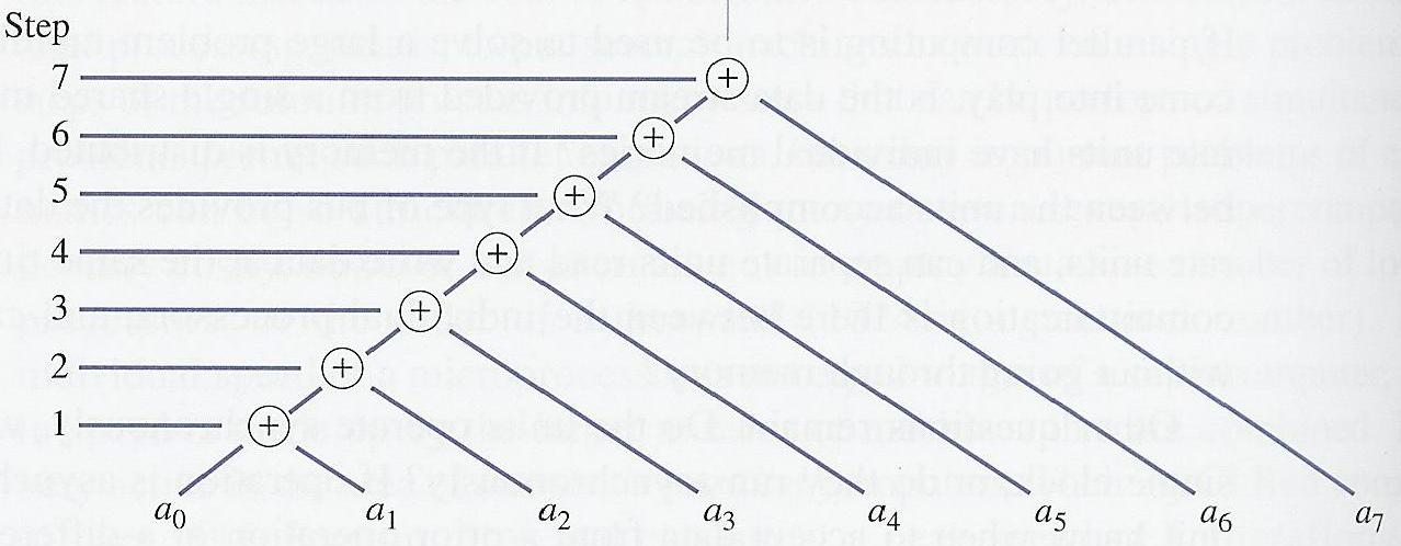 In the following figures, eight numbers added both sequential and in parallel. Describe in detail.